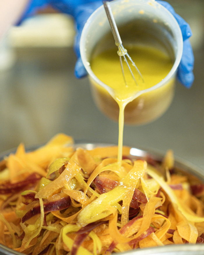 「3色にんじんのリボンサラダ〜シトラスみそ生姜ドレッシング〜」のレシピをご紹介します。